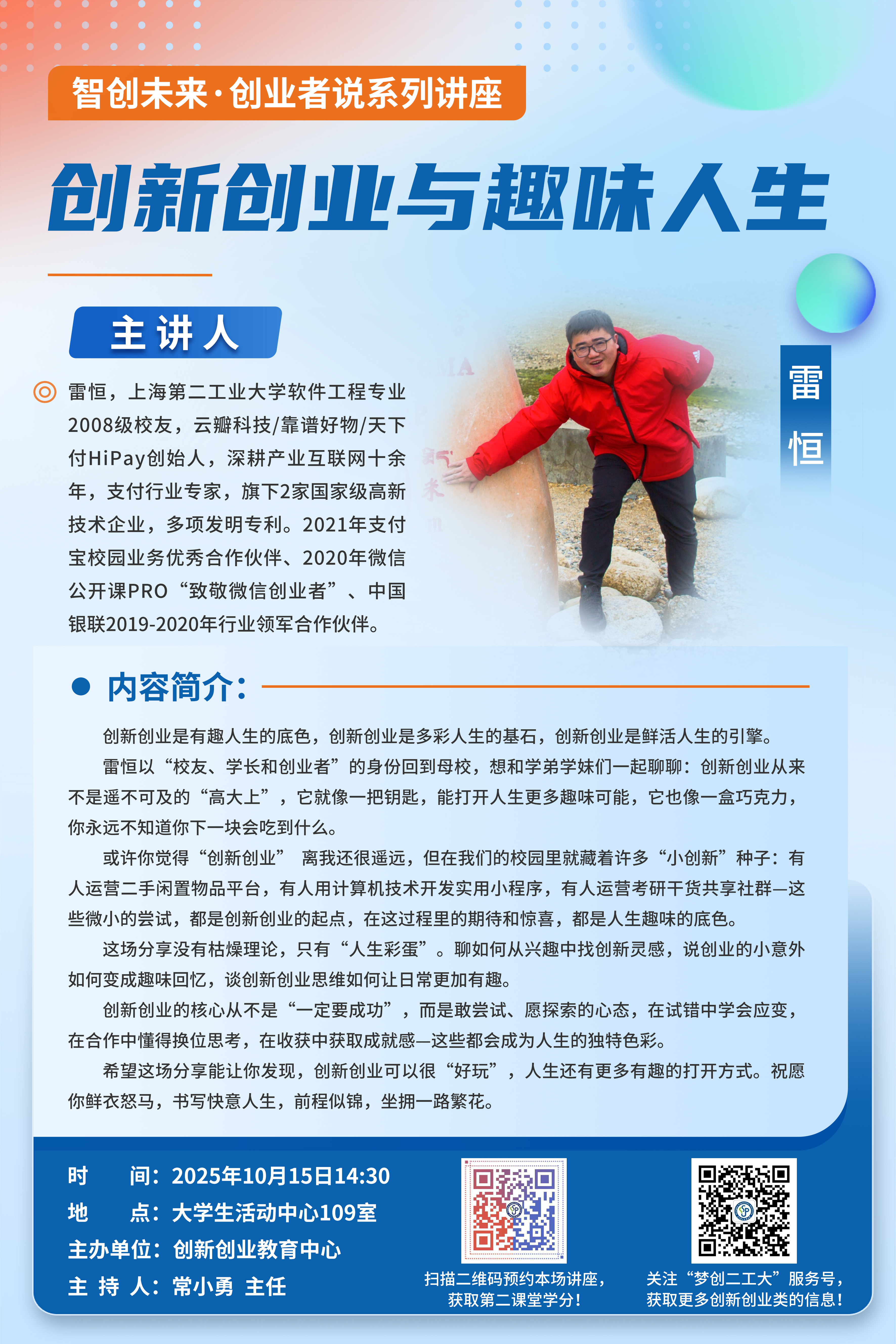 主 题:创新创业与趣味人生