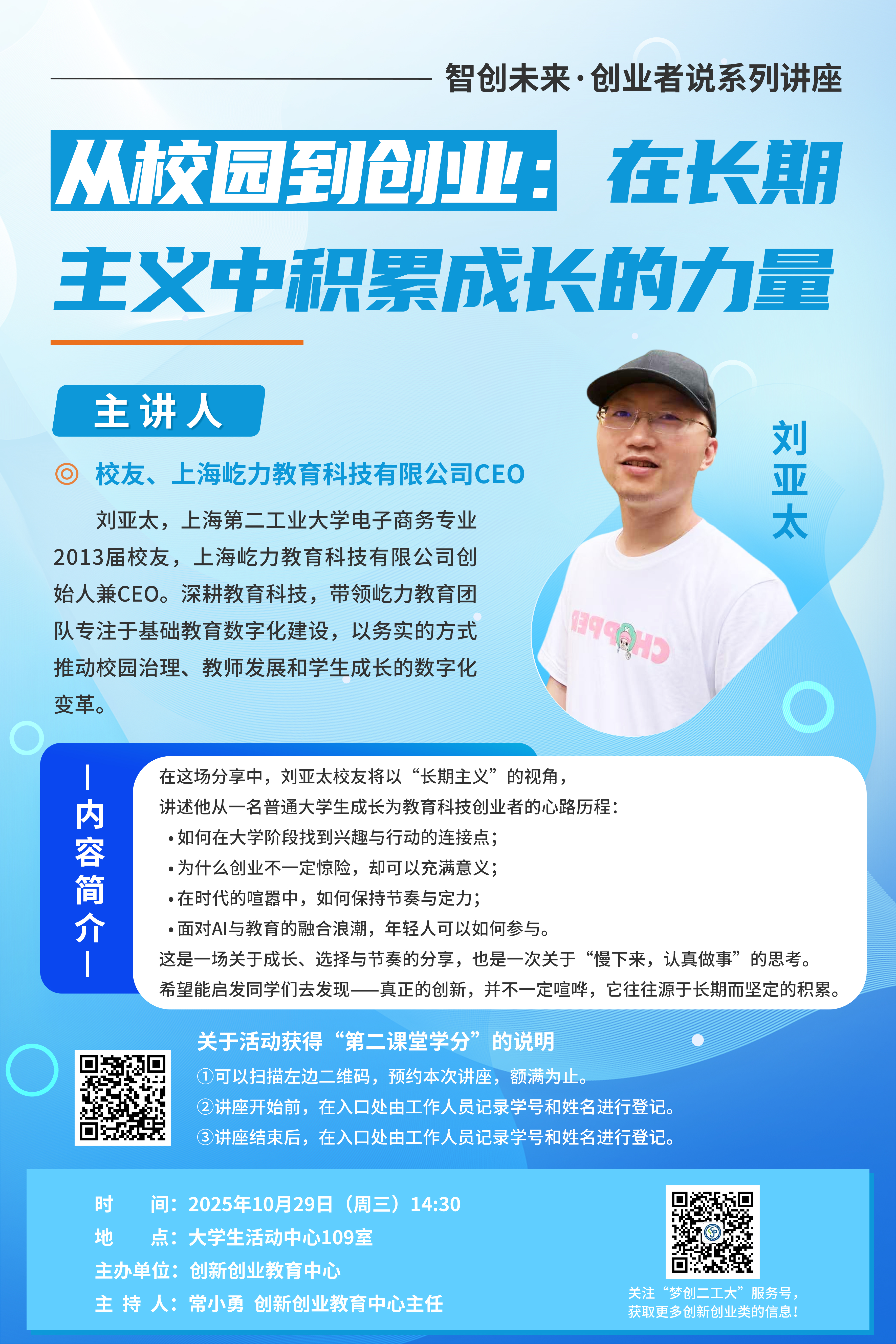 主 题:从校园到创业:在长期主义中积累成长的力量