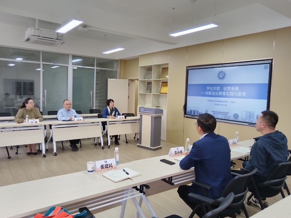 司忠业代表学院对我校一行来访表示热烈的欢迎,并详细介绍了华东理工大学创新创业学院的发展历程、组织架构、运行机制以及在创新创业人才培养、课程体系建设、实践平台搭建、项目孵化培育等方面的特色举措与显著成效。他分享了该院在推动专创融合、课训赛创以及激发学生创新精神、提升创业能力方面的探索与实践。
