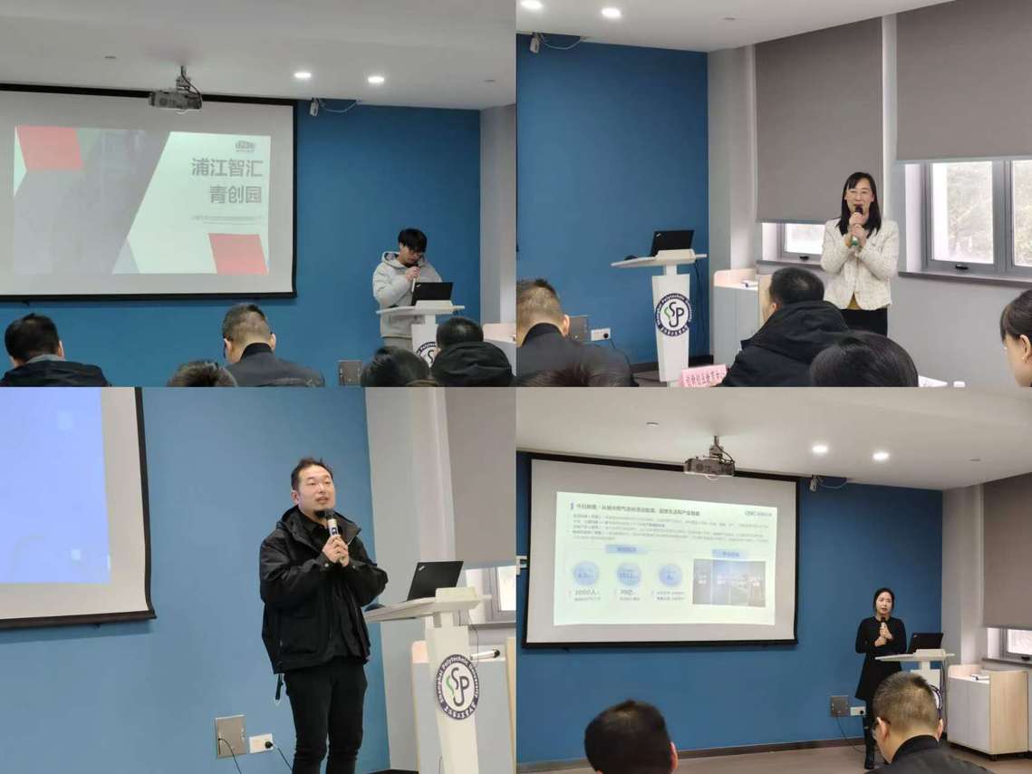 为了让在校创业团队更清楚的了解曹路镇孵化器的基本情况,各个孵化器代表依次上台为同学们介绍其内部的环境与具体的扶持政策。